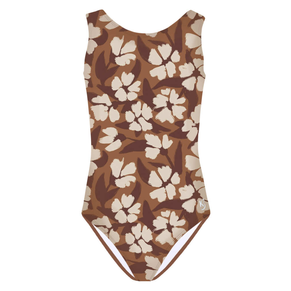 Artistic Edge: Oversized, brushstroke florals give this leotard a high-end, boutique feel that stands out on the floor.